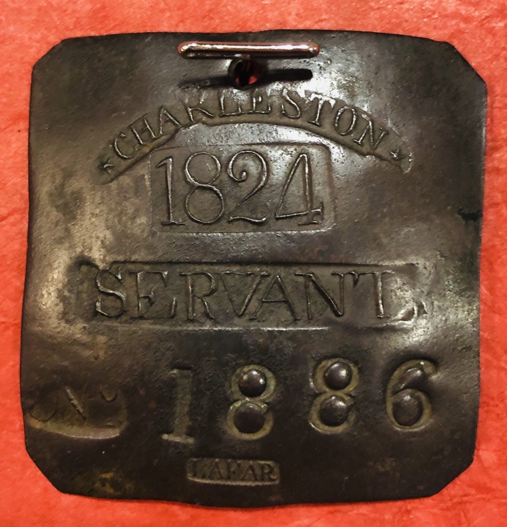 Slave tags, also referred to as slave hire badges, were produced in Charleston from 1800 to 1865 and functioned as a way to control and regulate the work and whereabouts of African descended people who were enslaved. These small, typically copper tags were sold by the city to enslavers and were stamped with the occupations of enslaved workers who often wore them sewn into their clothing. People who were enslaved held dozens of specialized occupations in 19th century Charleston. These included skilled trades such as porter, mechanic, and servant.